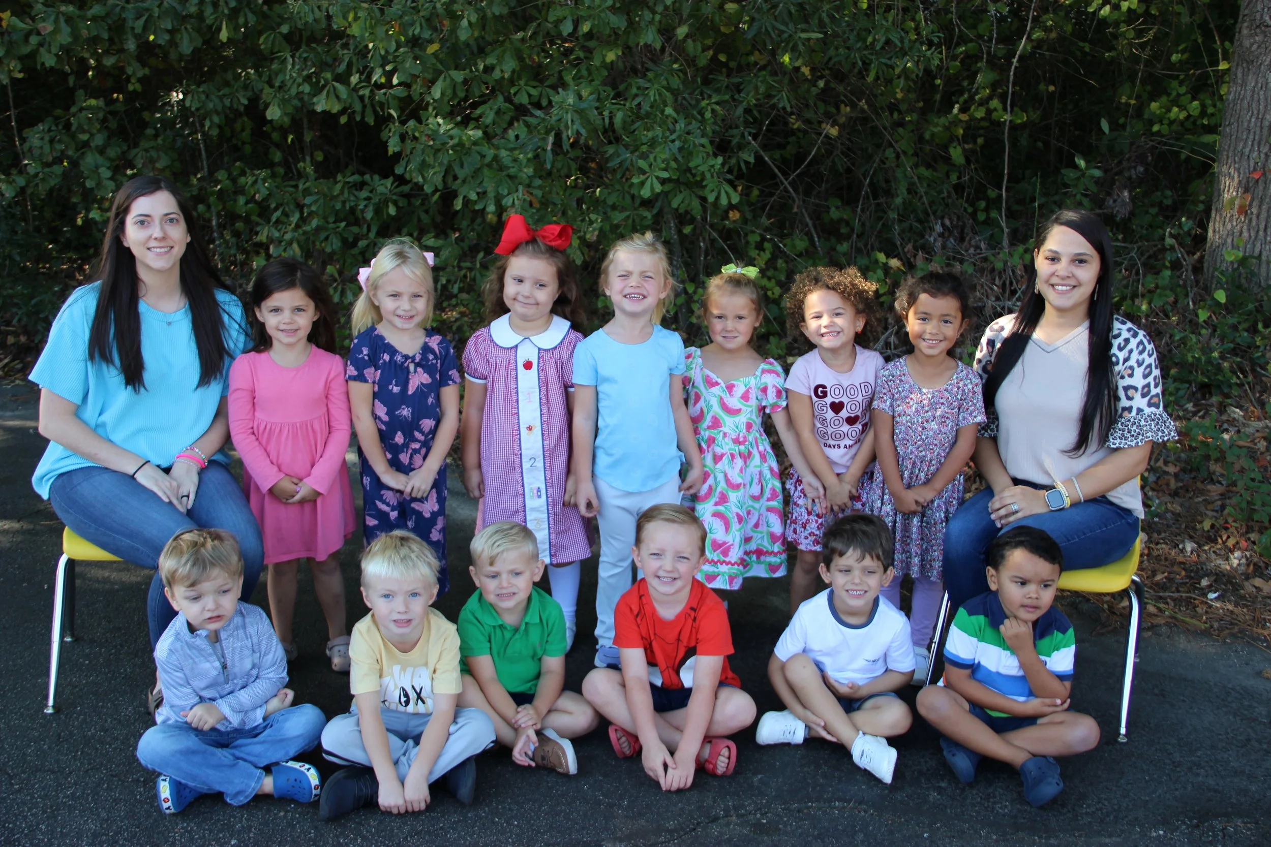 Our 4-year-old Pre-K class uses "WEE Learn" and "LetterLand" curriculums. Our goal for our Pre-K class is to be fully prepared for Kindergarten by having strong communication skills, problem solving skills, organization skills, and letter and number recognition. At the end of the year we strive for our students to be able to write their name independently, be able to copy letter and number formation, understand quantities , be able to answer questions about a read aloud story, and know how to take turns and share with other children. Alphabet letter names, letter sounds, numbers, shapes, colors, Bible Stories, and Bible Verses are taught as well as learning about the theme topic of the week. Each week our students have the opportunity to do music and movements, arts and crafts, gross motor play, fine motor play, use their imaginations through pretend play, ride bikes, play outside, and learn about the love of Jesus! Each of our classes participate in a weekly chapel which is where we come together as a school to sing praises to God and go deeper into our Bible Lesson for the week. We encourage learning through play while challenging our students to push themselves to their full potential. Our goal is to spark an excitement into each child so they can carry a love for learning with them through their life.